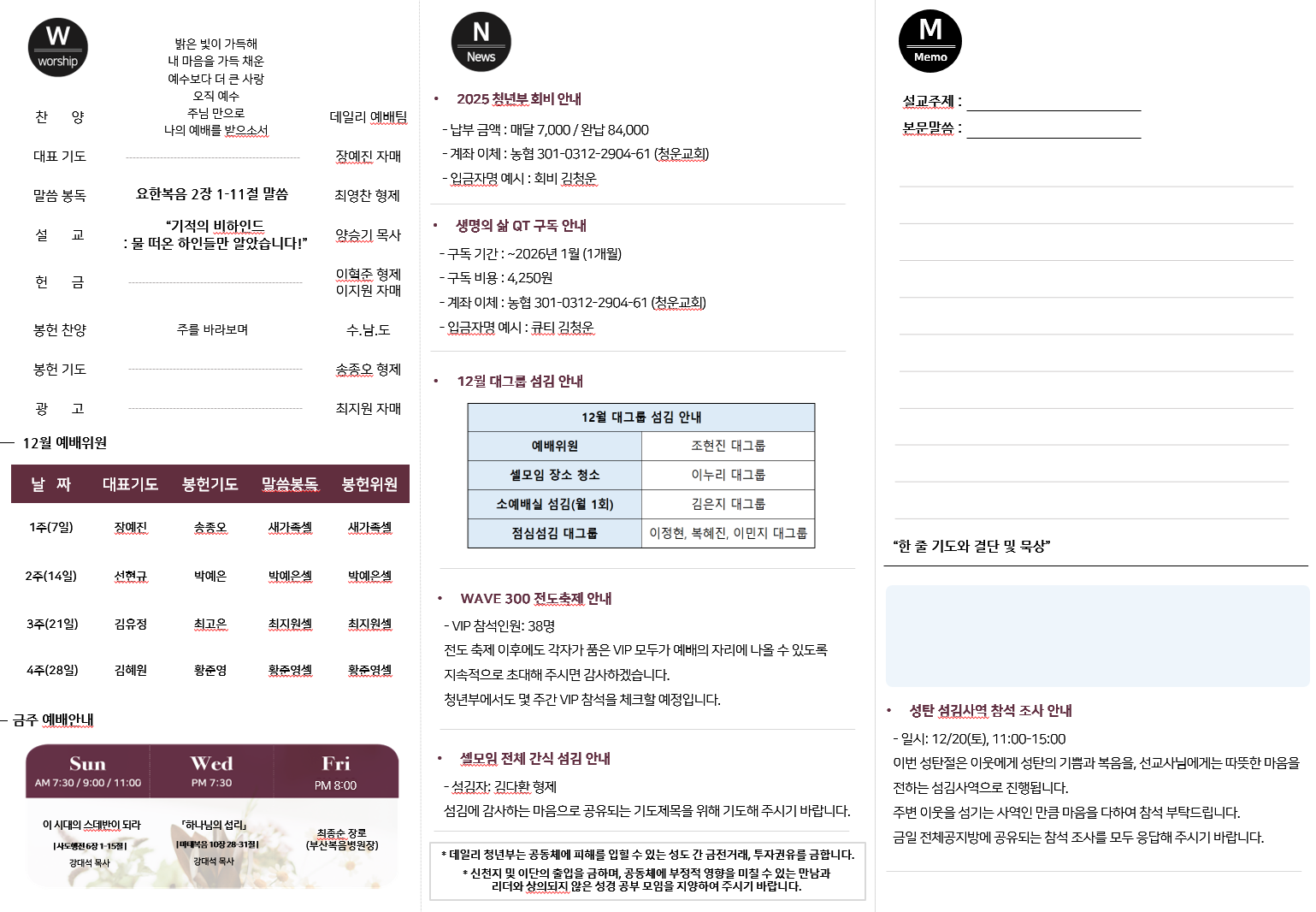 2025년 12월 14일 데일리 청년부 예배 주보입니다!
