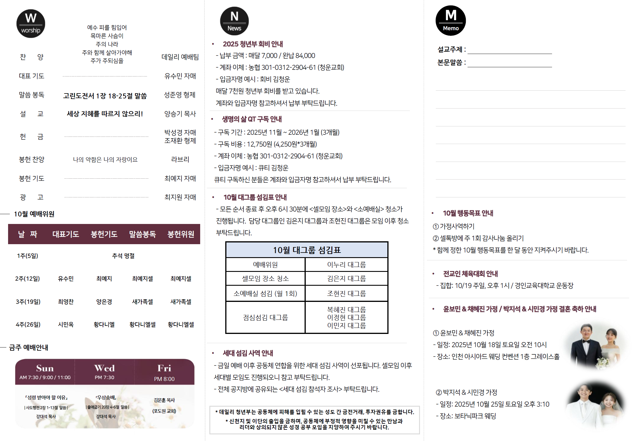 2025년 10월 26일 데일리 청년부 예배 주보입니다!