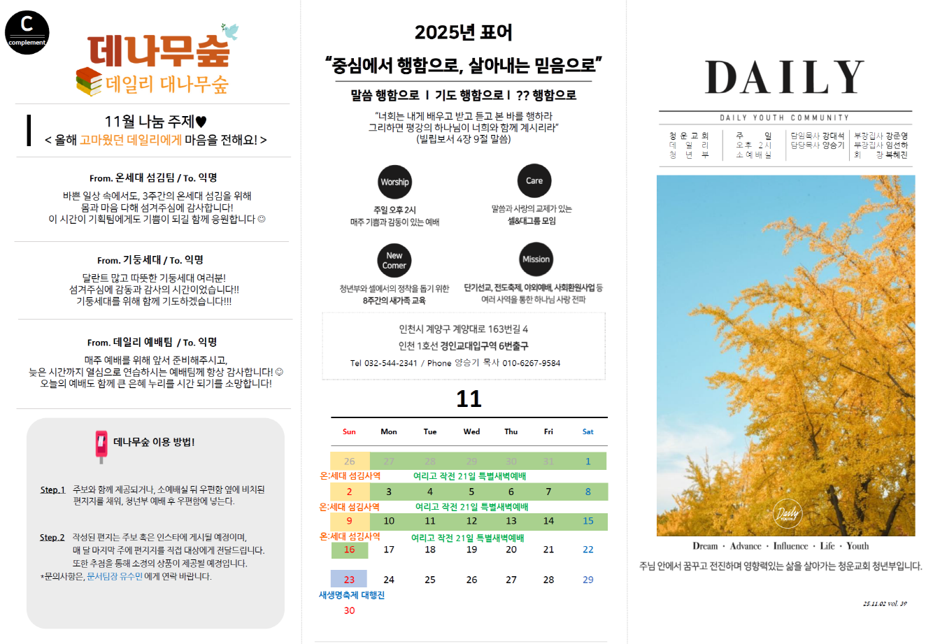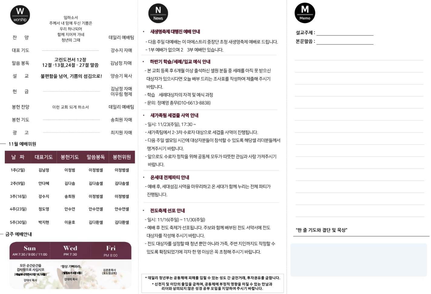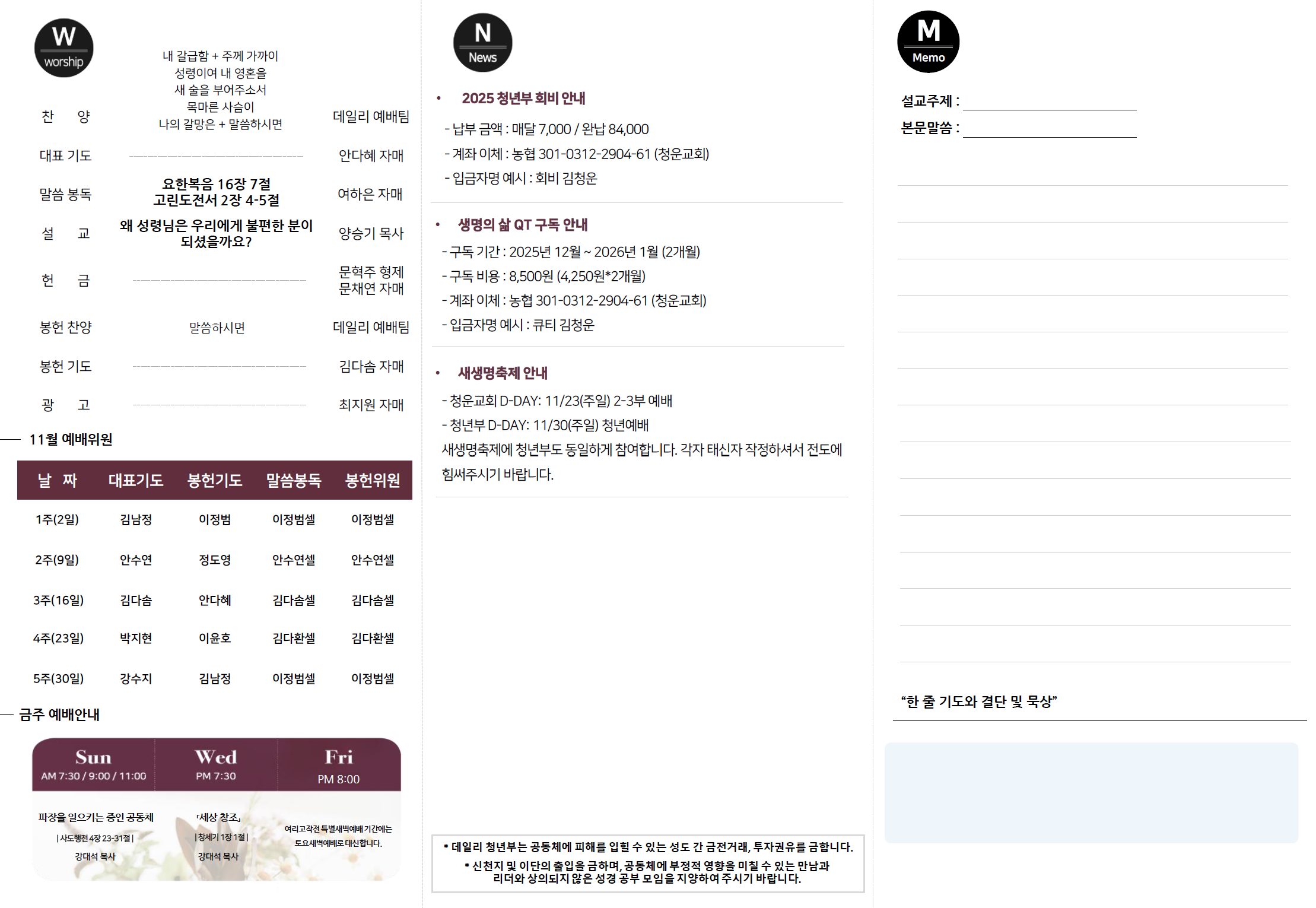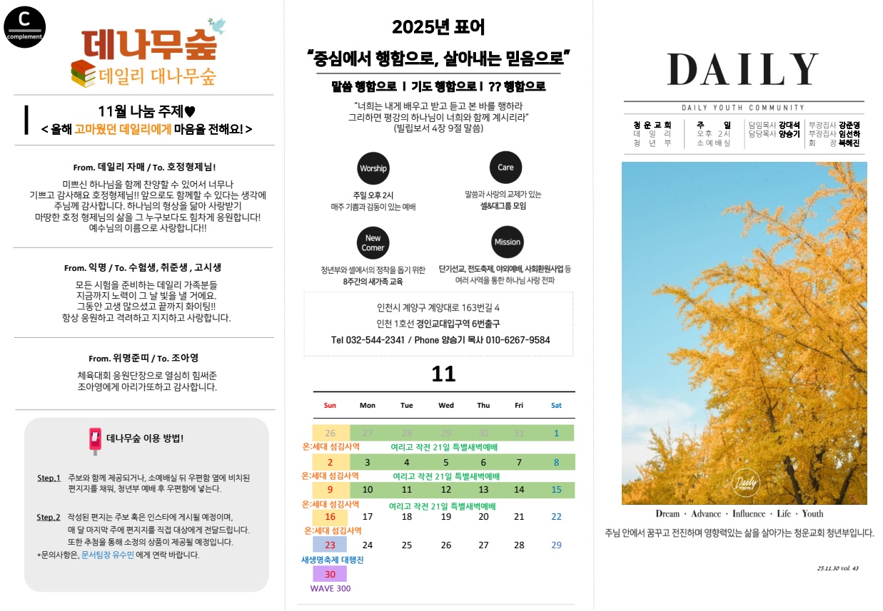 2025년 11월 16일 데일리 청년부 예배 주보입니다!