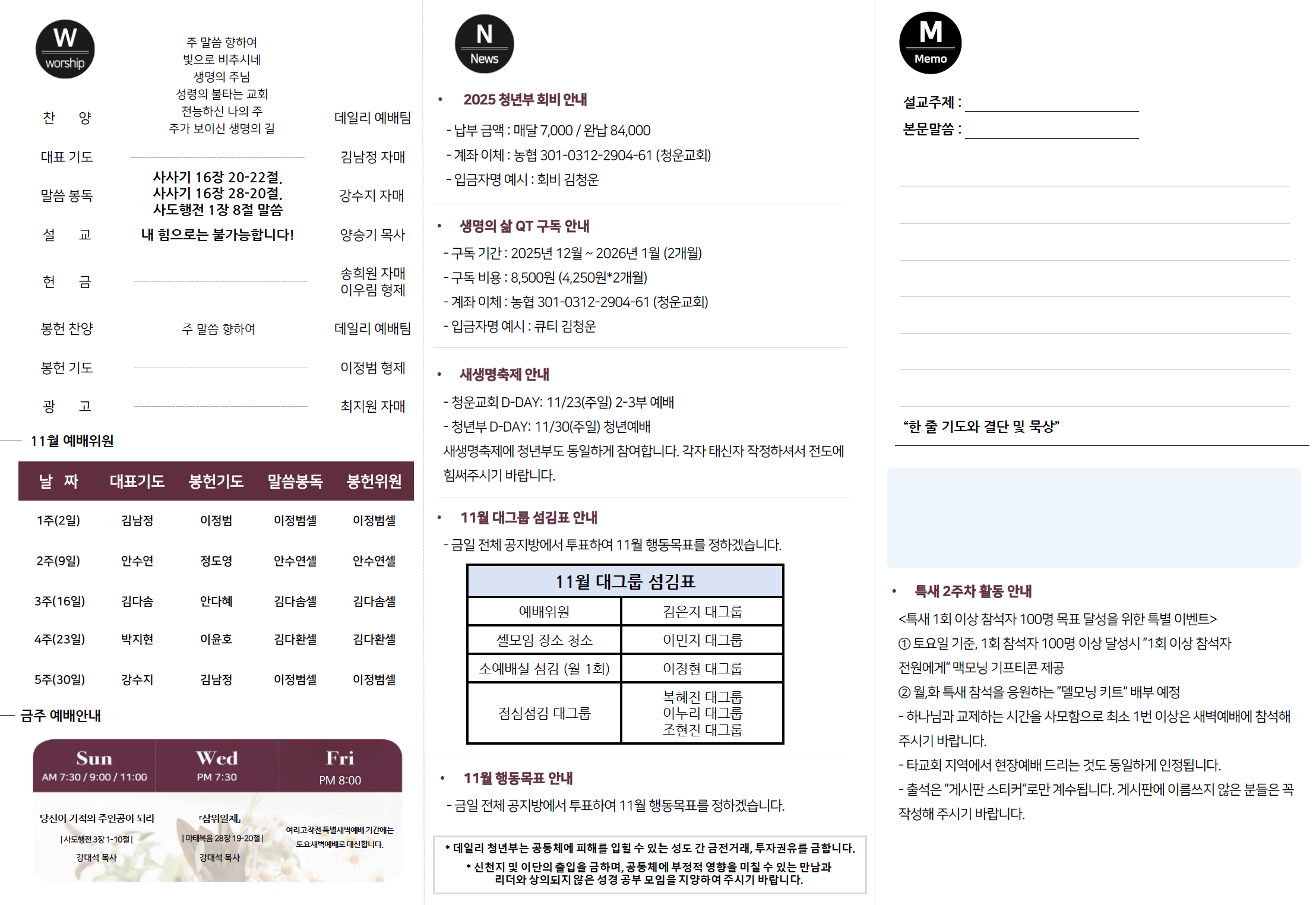 2025년 11월 02일 데일리 청년부 예배 주보입니다!
