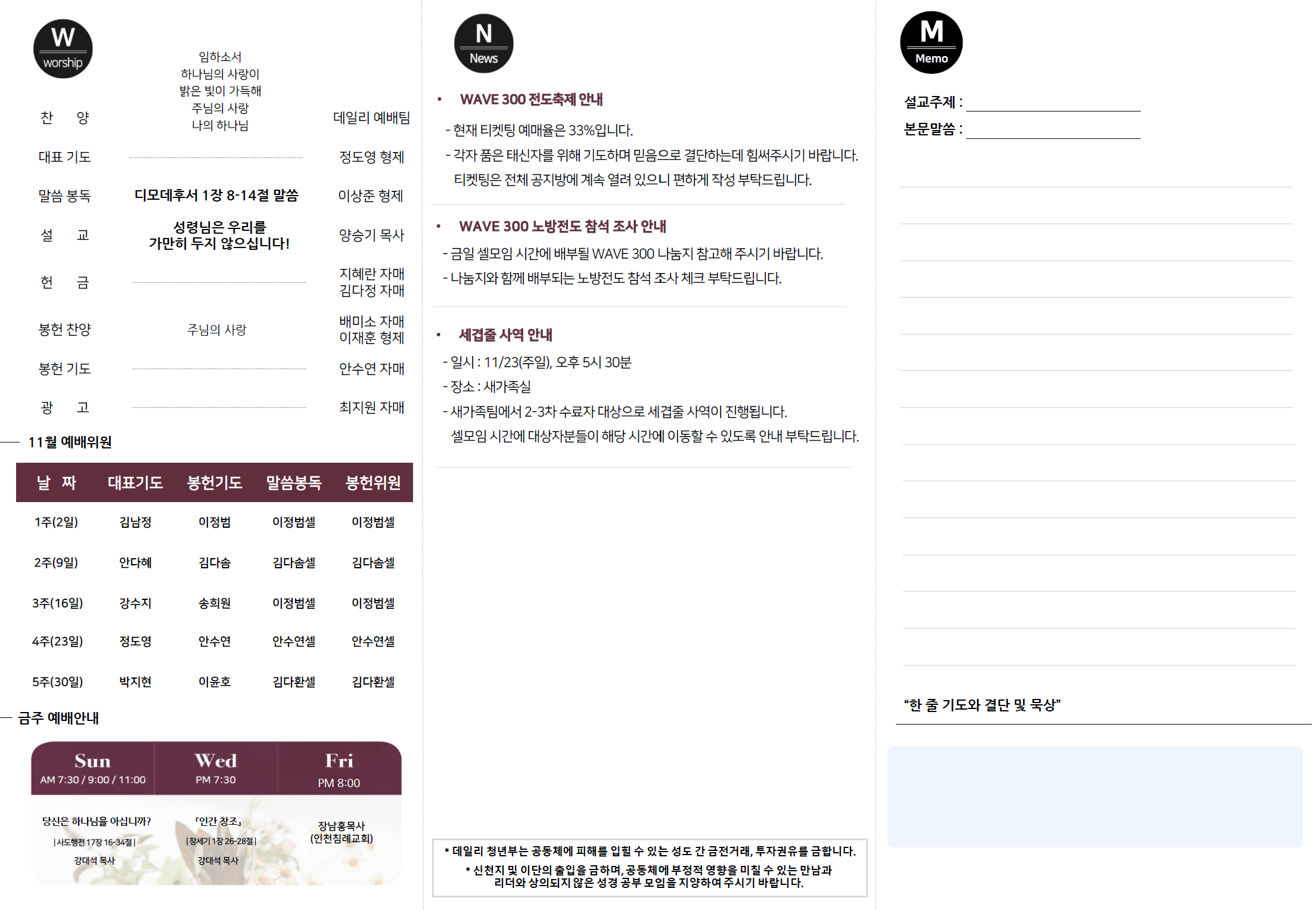 2025년 11월 09일 데일리 청년부 예배 주보입니다!