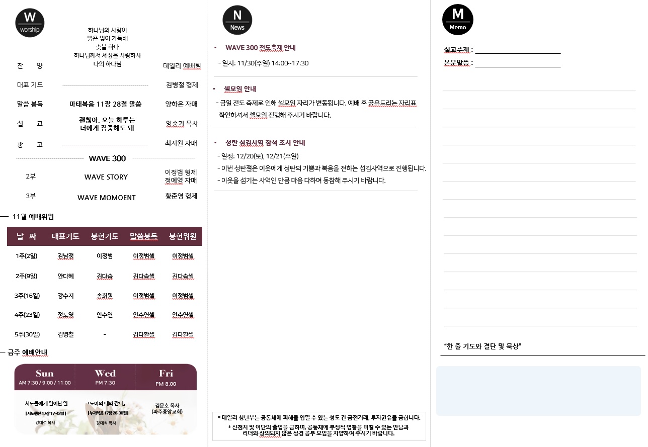 2025년 11월 30일 데일리 청년부 예배 주보입니다!