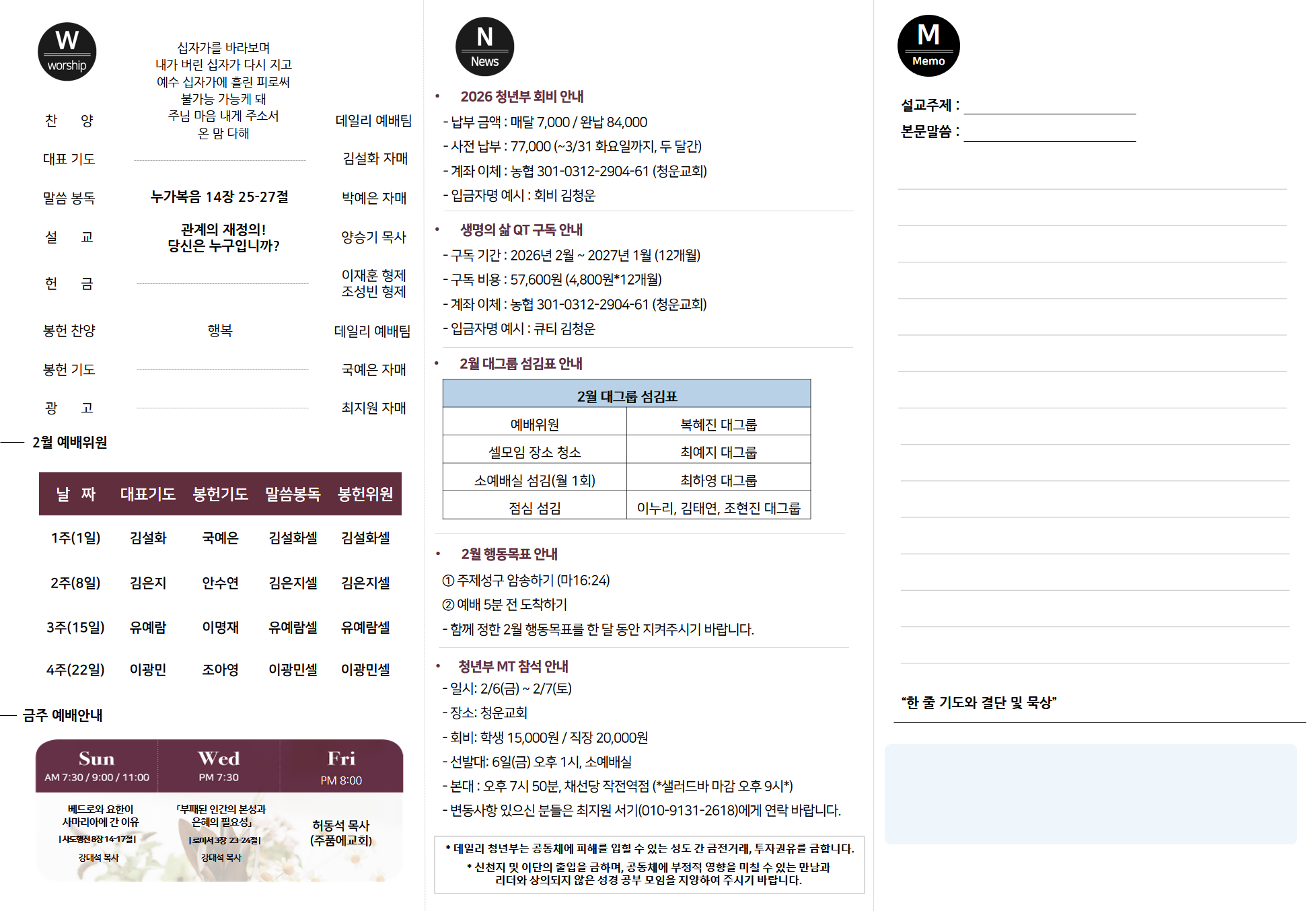 2026년 2월 1일 데일리 청년부 예배 주보입니다!