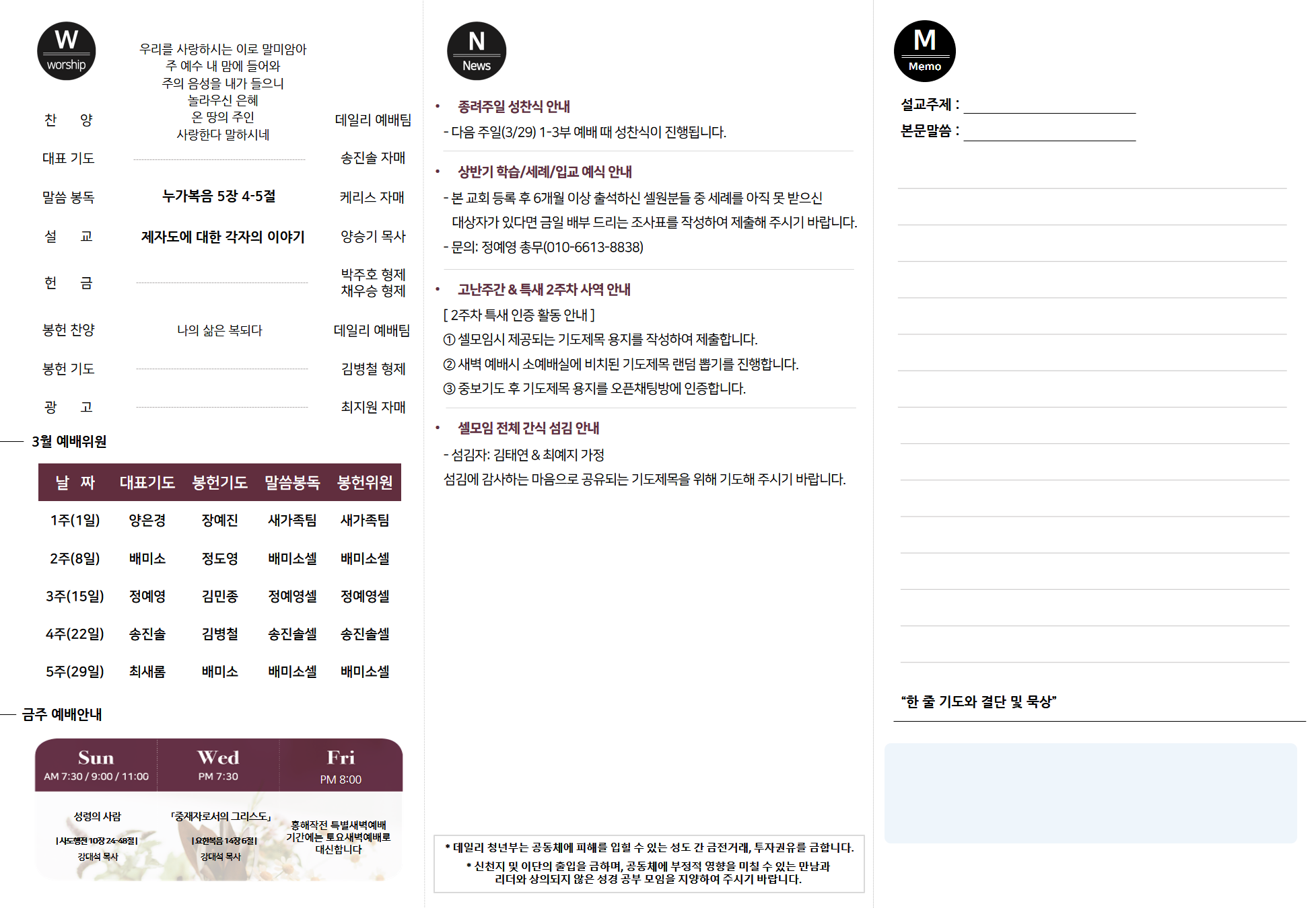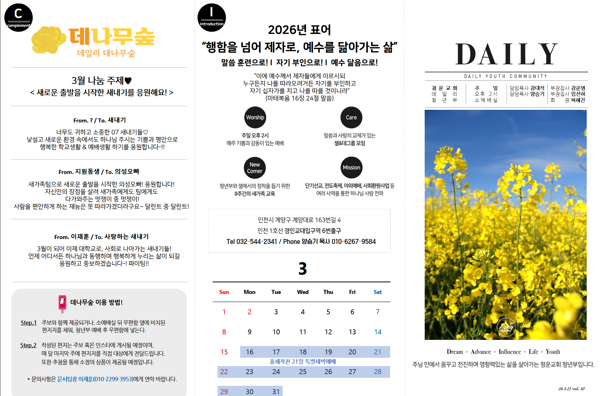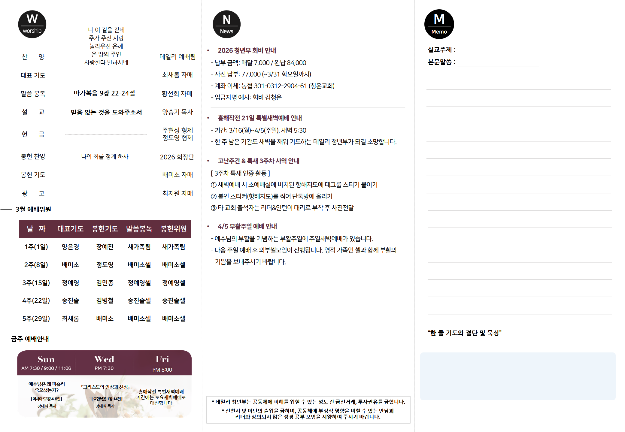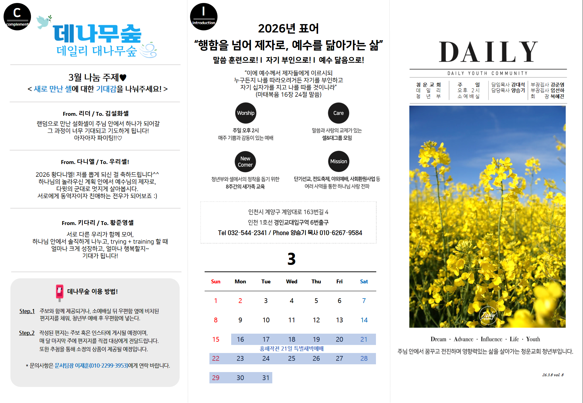 2026년 3월 15일 데일리 청년부 예배 주보입니다!