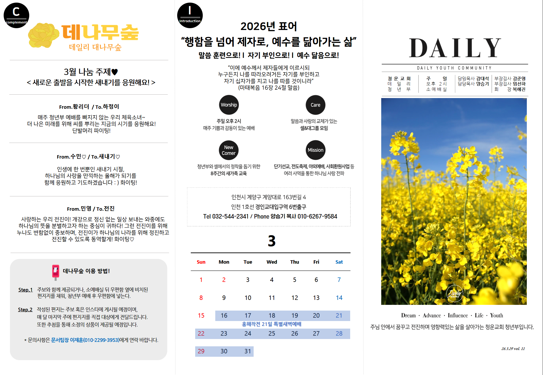2026년 3월 1일 데일리 청년부 예배 주보입니다!