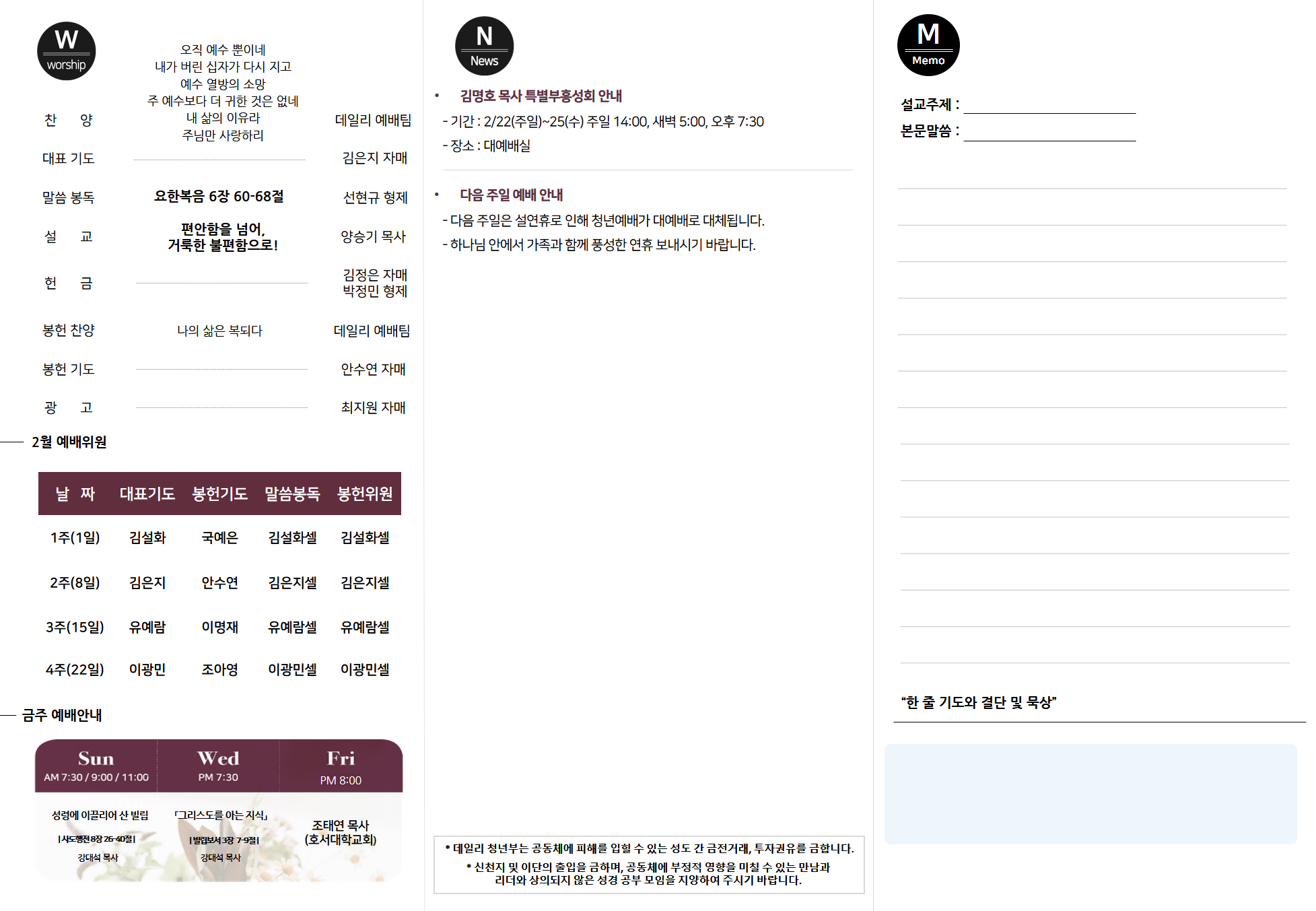 2026년 2월 1일 데일리 청년부 예배 주보입니다!