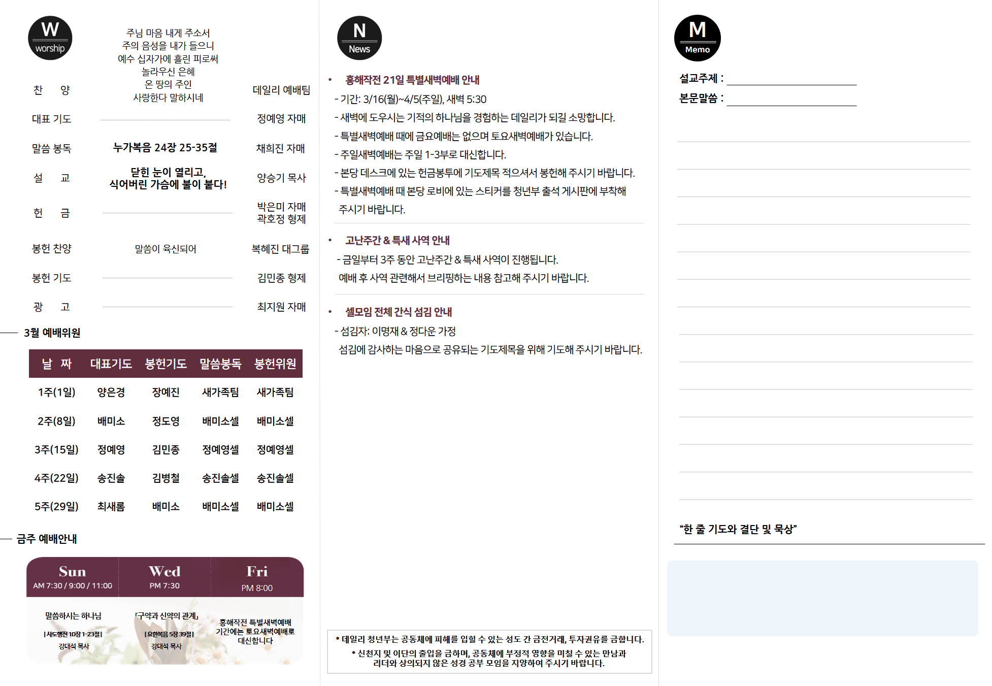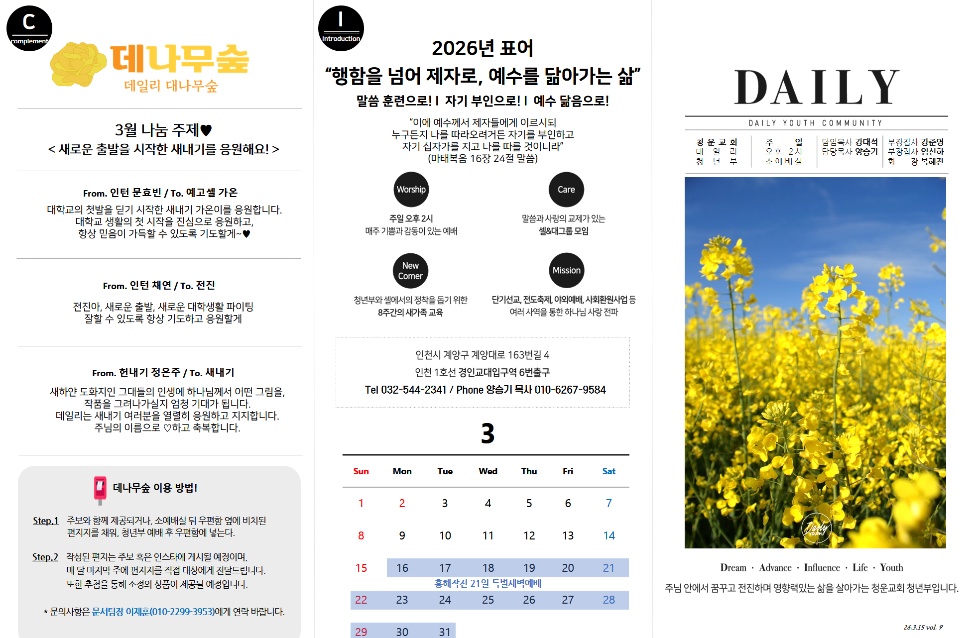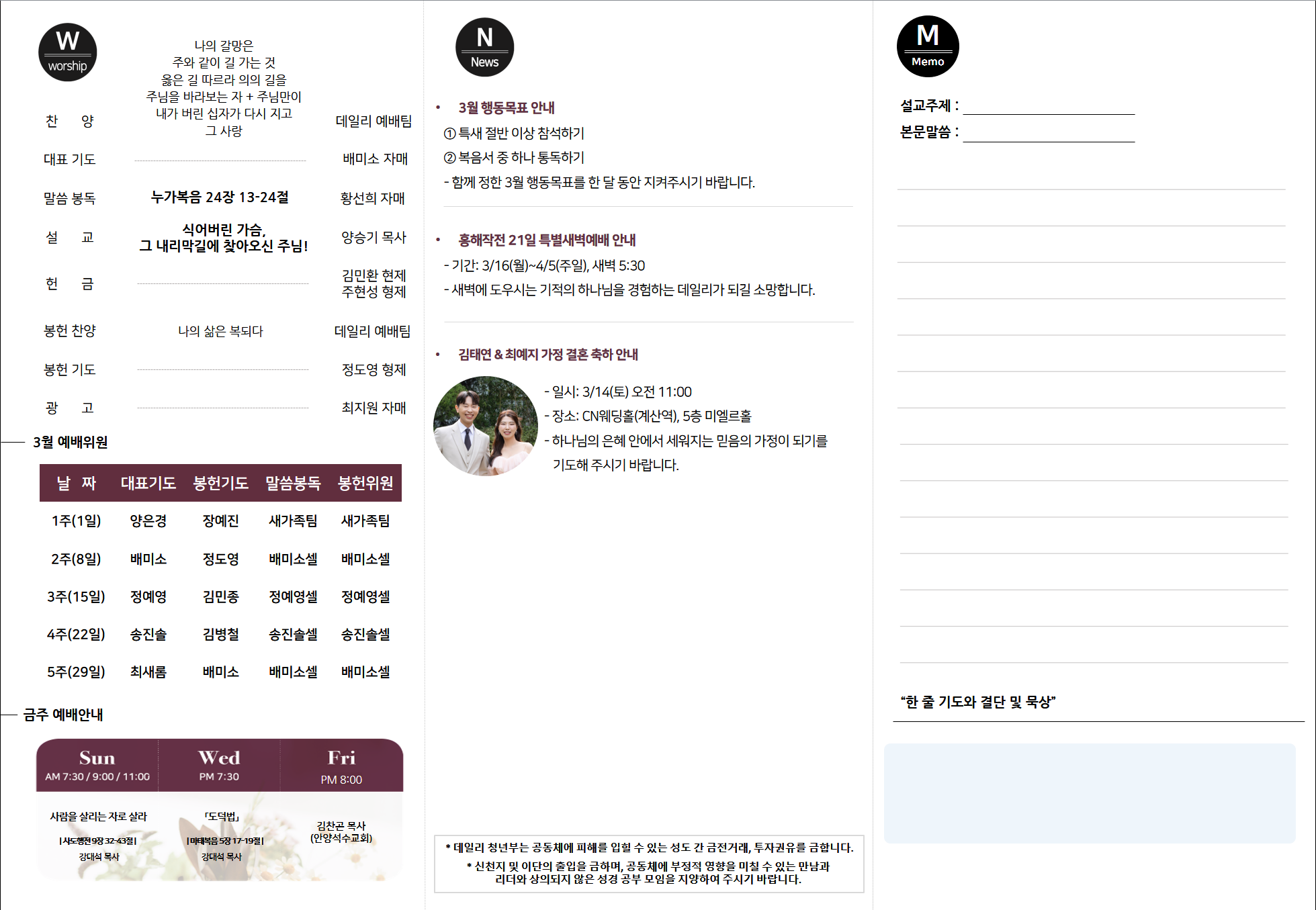 2026년 3월 15일 데일리 청년부 예배 주보입니다!