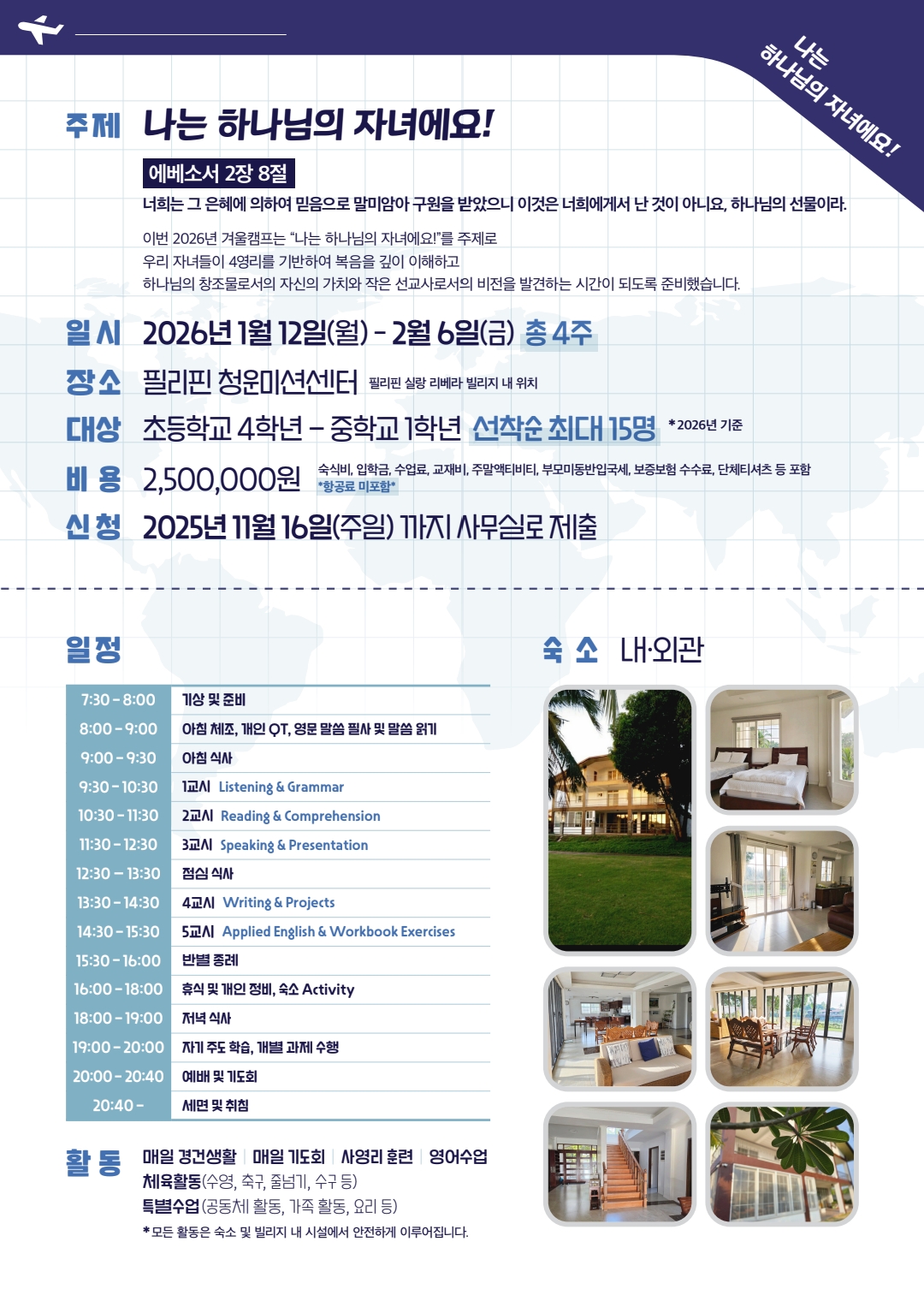 7) 겨울영어캠프 교사로 섬겨주실 분은 사무실로 신청해 주시길 바랍니다.